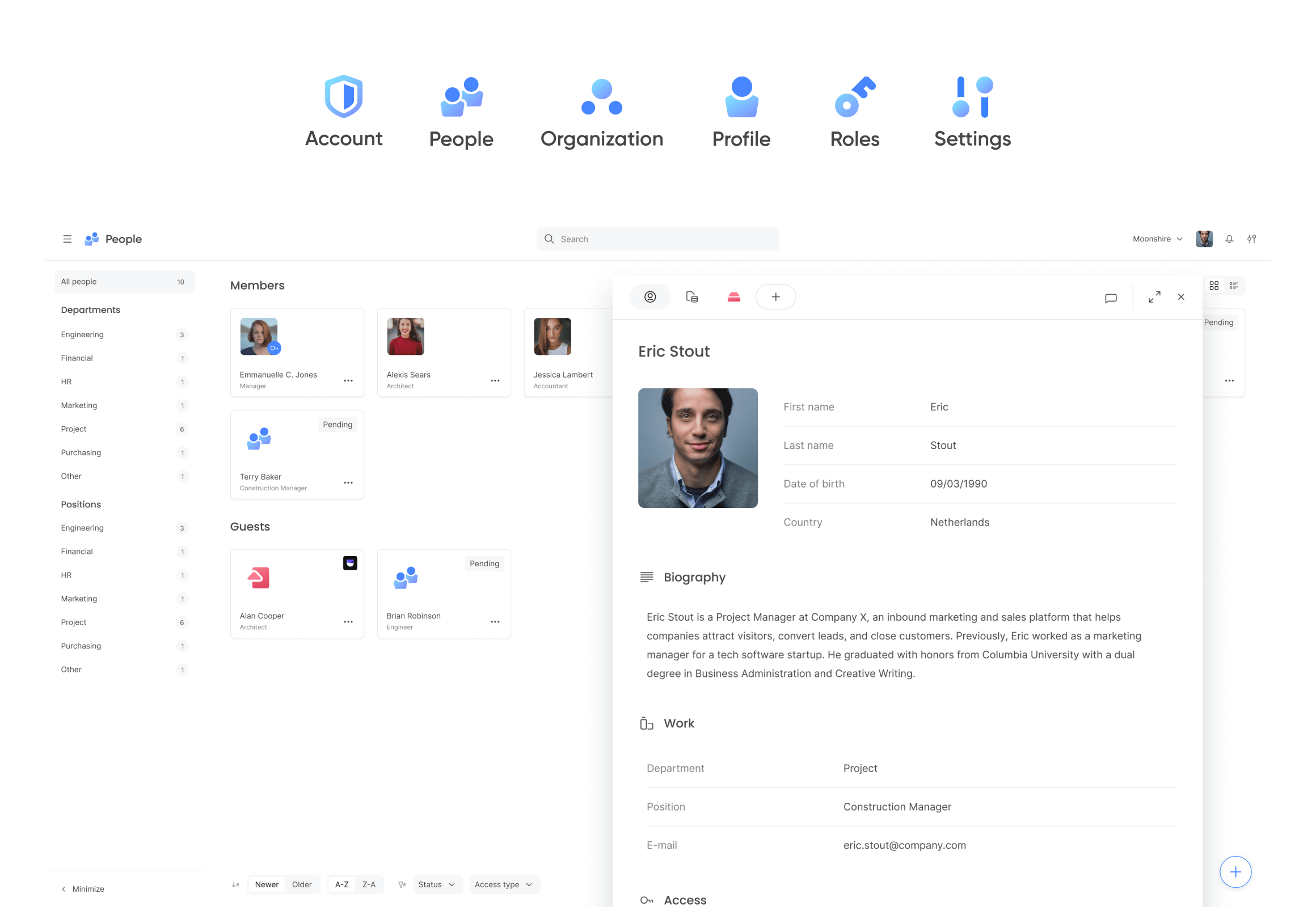Manage subscriptions, authorisations, members and guests with global and app-specific roles.