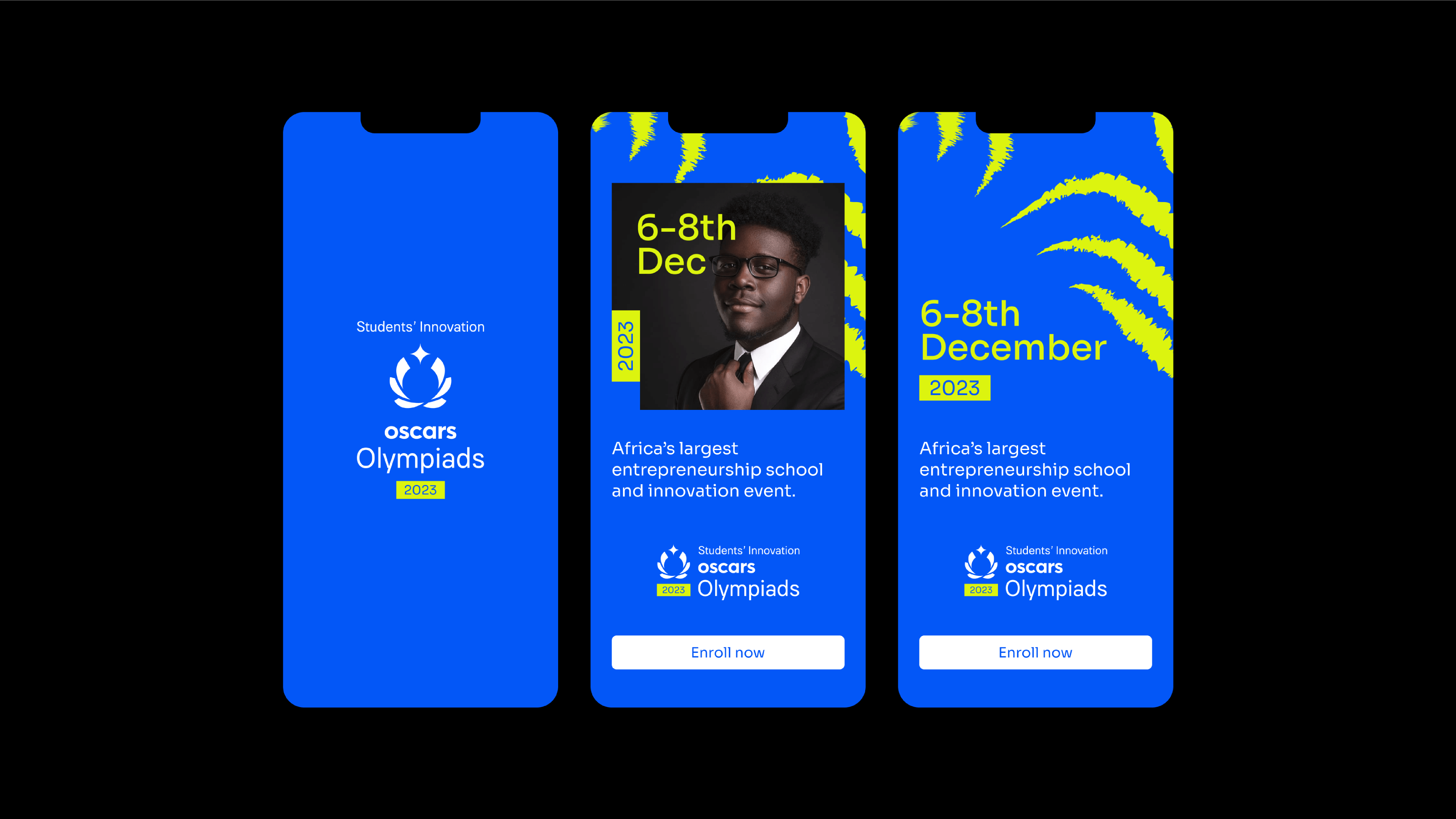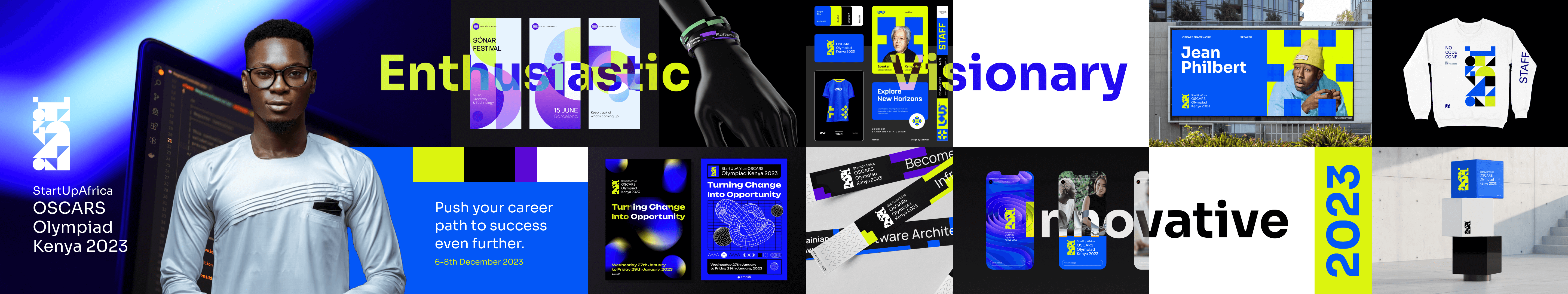 For the OSCARS Olympiads 2023 in Kenya, we defined vibrant colours and striking visuals starting off with a stylescape targeting their young students audience. We also learnt about the importance of reusing part of OSCARS brand identity and the representation of its core values, therefore reinforcing OSCARS status and visibility.
